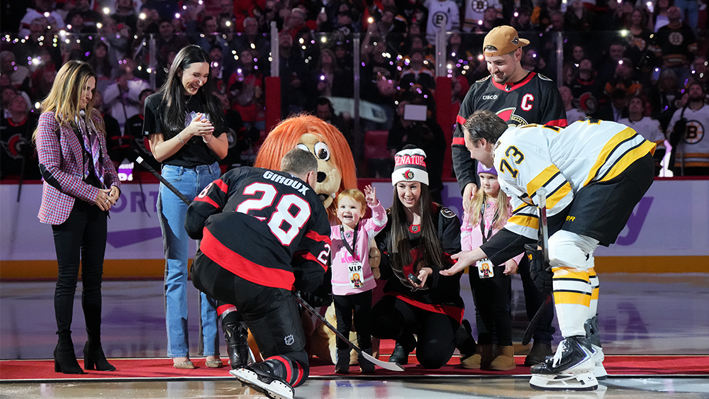 * Tim Stützle scored the game-winning goal with 5:43 remaining in the third period as the Senators ended the Bruins’ seven-game win streak. His five go-ahead goals trail only Cole Caufield (8), Bo Horvat (6) and Seth Jarvis (6) for the most among all players. Two-year-old Grace, who is battling a rare form of neuroblastoma, participated in one of two pre-game ceremonies and was joined in a ceremonial puck drop by Senators owner Michael Andlauer and his wife Lucie.
