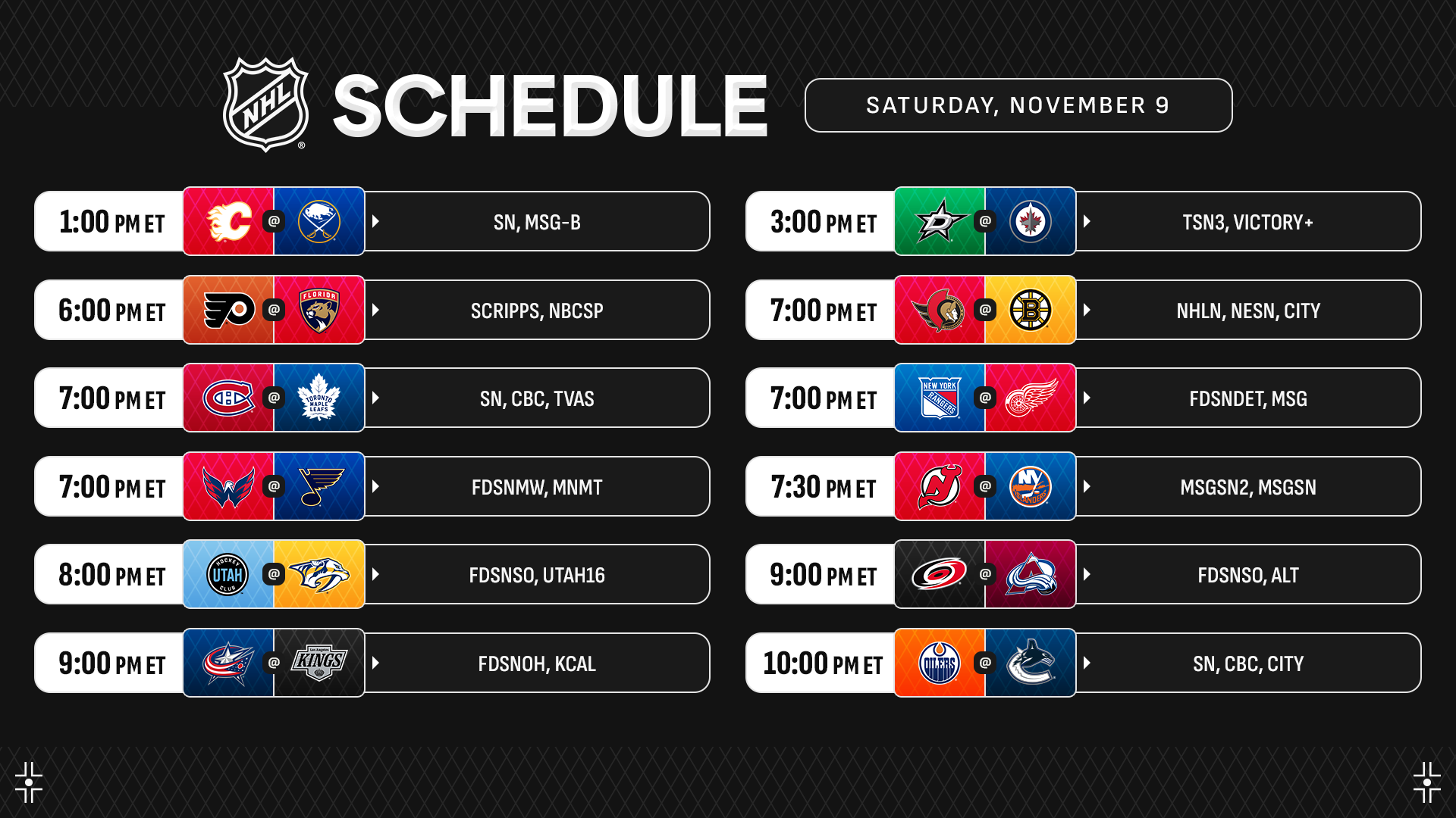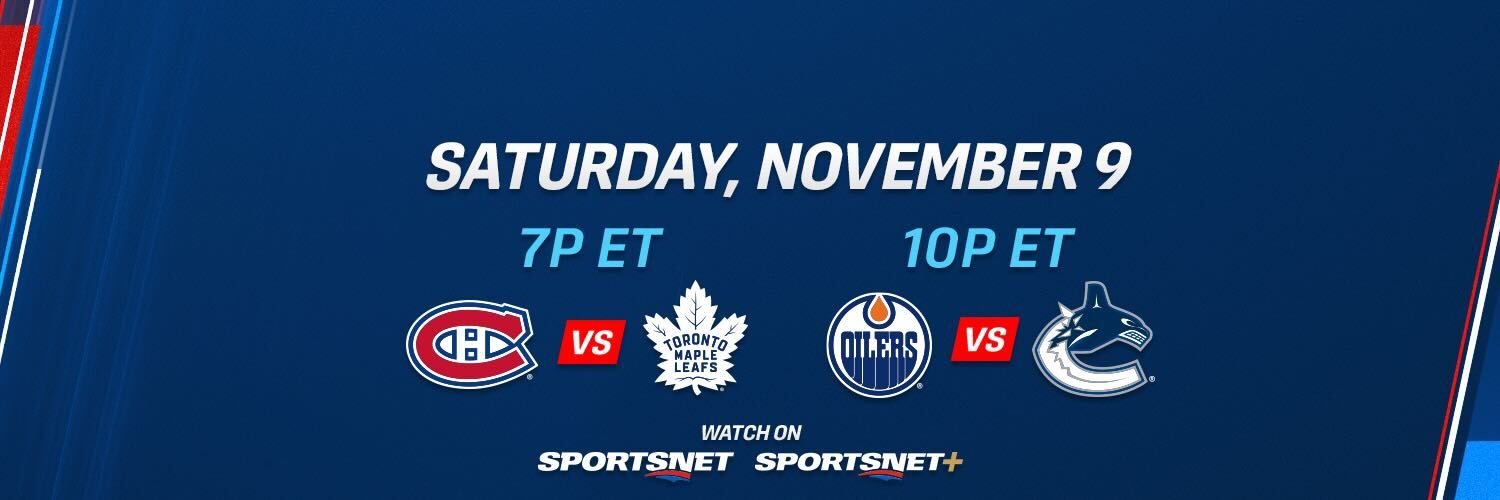 All seven Canadian teams are in action Saturday, five of which will be featured in the Hockey Night in Canada broadcast as the Senators and Bruins open their season series, the Maple Leafs look to extend a lengthy streak against the Canadiens, while the Oilers and Canucks conduct a rematch of the 2024 Second Round.