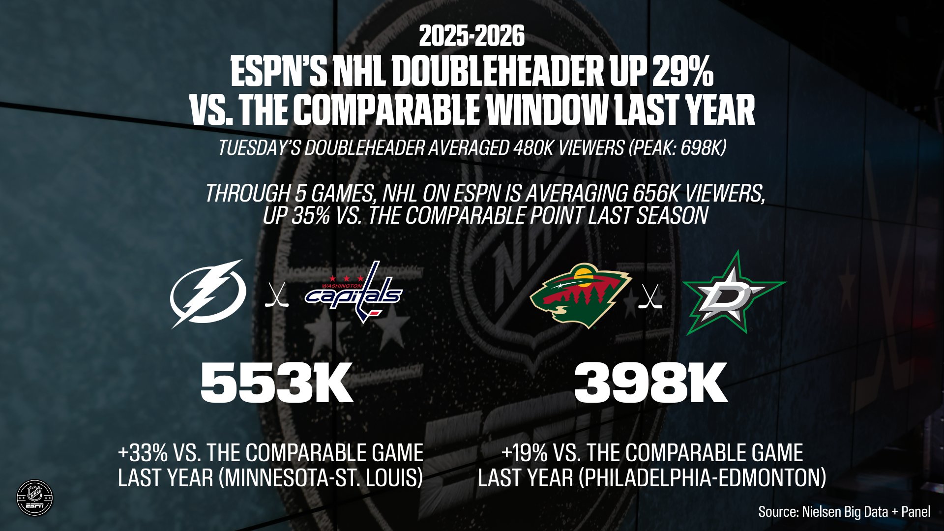 * Tuesday’s ESPN doubleheader saw +29% vs comparable window last year