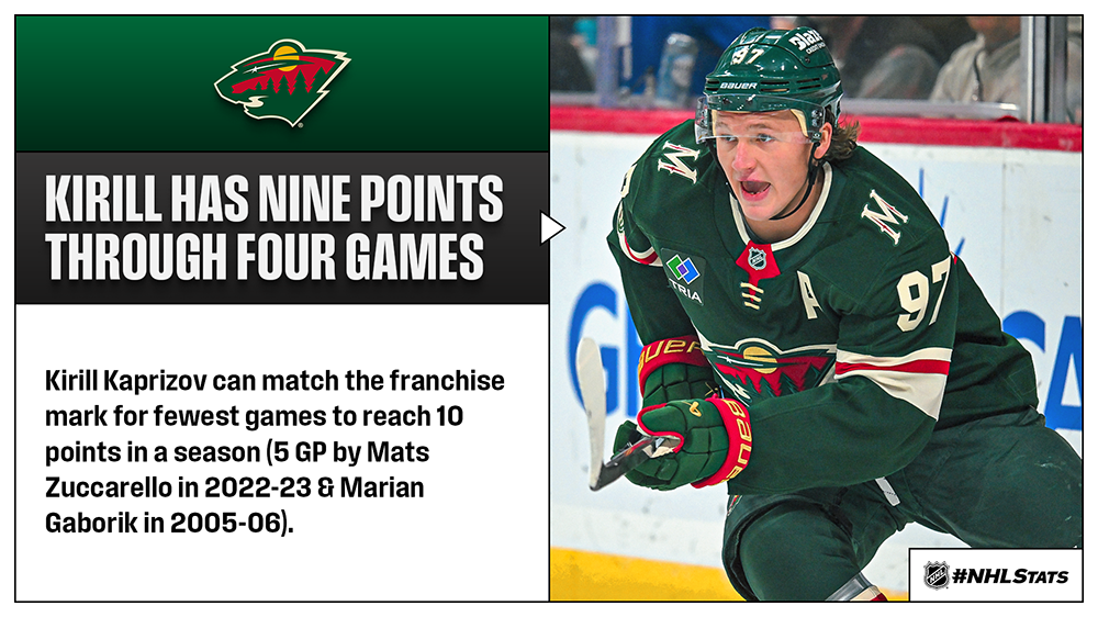 * Patrick Kane can inch closer to the 500-goal milestone and the NHL’s all-time points record among U.S.-born players as the Red Wings look to forge four wins through five games in a season for the second time in three years (also 4-1-0 in 2023-24). Nikita Kucherov needs three points to become the League’s fourth-fastest player born outside North America to reach 1,000 behind Peter Stastny (682 GP), Jari Kurri (716 GP) and Jaromir Jagr (763 GP).