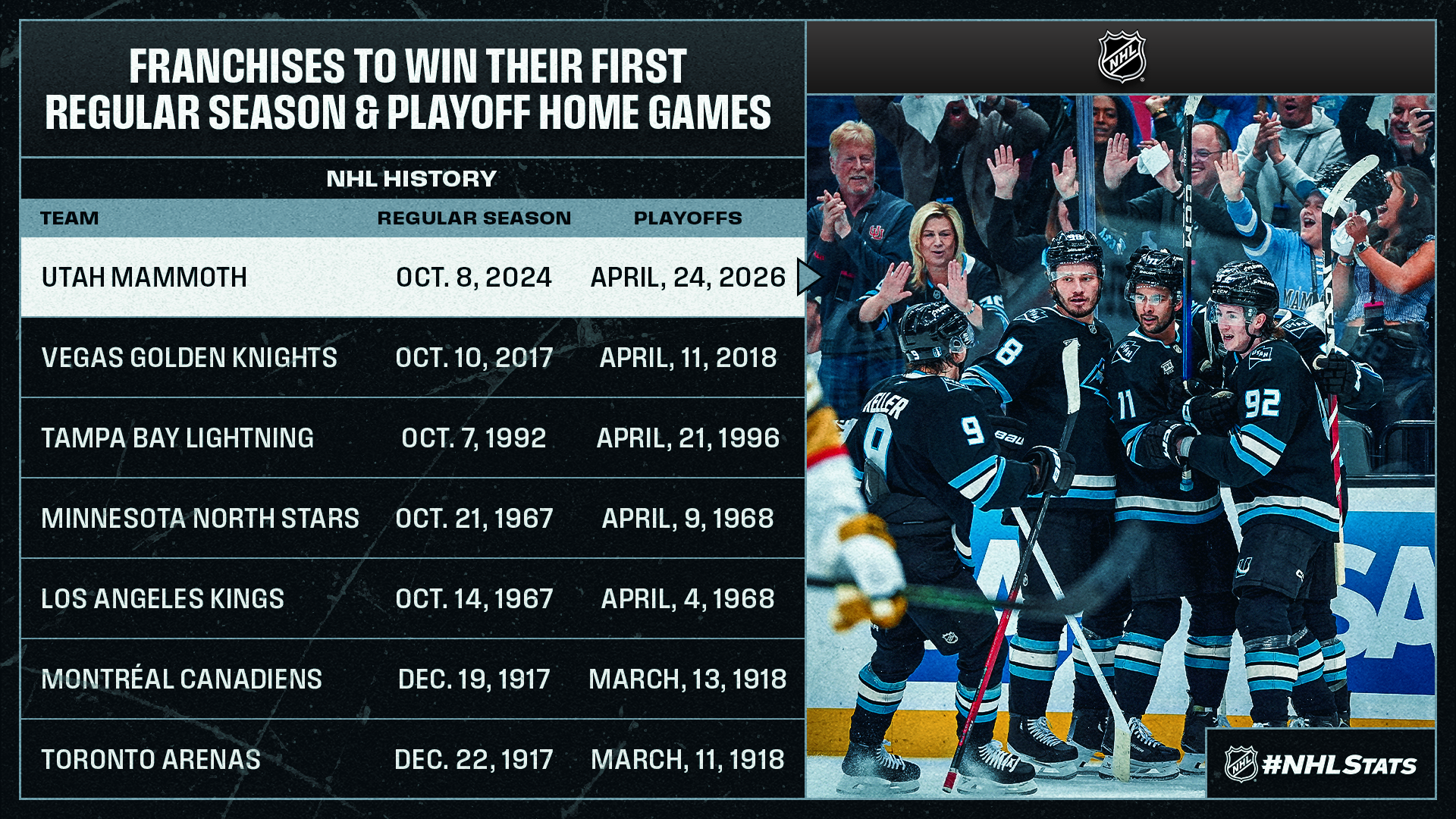 The celebration of postseason hockey in Utah began before puck drop with a helicopter flyover and continued through the night as Dylan Guenther (1-0—1) factored on one of his team’s four goals to help the Mammoth earn a win in their first-ever playoff home game and take a 2-1 series lead in front of an ecstatic crowd at Delta Center. Utah became the sixth franchise that has debuted since the 1990s or later to win their first-ever Stanley Cup Playoffs home game.