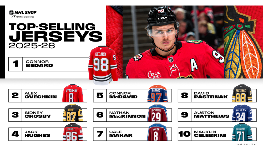 The NHL set a total attendance record for the fourth consecutive regular season, with 23,158,522 fans – 97.5% of capacity – eclipsing the previous high of 23,014,458 set in 2024-25. The per-game average was 17,651 and includes contests at 35 venues. Click here for more on the attendance four-peat. Many of those fans sported new jerseys, with Connor Bedard (CHI) the go-to choice for many.