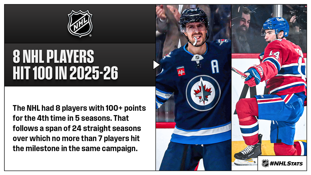 * A snapshot of some of the top-scoring duos in 2025-26: In Montreal, Cole Caufield and captain Nick Suzuki recorded the first 50-goal and 100-point seasons in 36 and 40 years, respectively. In Winnipeg, Mark Scheifele and Kyle Connor factored on the same goal a League-best 65 times. Set to face off in the First Round, Dallas (Jason Robertson & Wyatt Johnston) and Minnesota (Kirill Kaprizov & Matt Boldy) each had multiple 40-goal scorers in the same season for the first time in team history, while Nashville did so for the second time (Steven Stamkos & Filip Forsberg).
