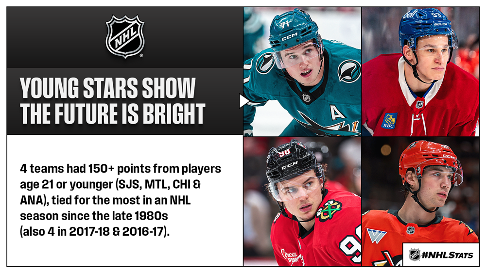 * Other young players with breakout seasons include Beckett Sennecke (ANA), who shared the rookie goals lead and is part of a top three in team scoring whose average age is 22; Jimmy Snuggerud (STL), the highest-scoring rookie post-Olympics ahead of Schaefer; and Connor Bedard (CHI), the youngest 30-goal scorer in Blackhawks history.