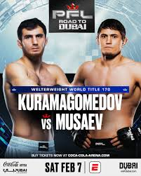 PFL Dubai serves as the promotion’s 2026 season opener, featuring a co-main event for the inaugural PFL welterweight title between undefeated Bellator import Ramazan Kuramagomedov and 2024 PFL tournament standout Shamil Musaev. Kuramagomedov, a well-rounded wrestler with finishing ability, captured the final Bellator welterweight belt in 2024 and enters PFL aiming to establish dominance. Musaev, a heavy-handed striker with elite grappling, won four fights in 2024 to reach this title shot, showcasing his ability to finish top competition. This five-round clash pits two unbeaten prospects in a high-stakes battle for gold, adding fireworks to a card headlined by Usman Nurmagomedov defending his lightweight title against Alfie Davis.