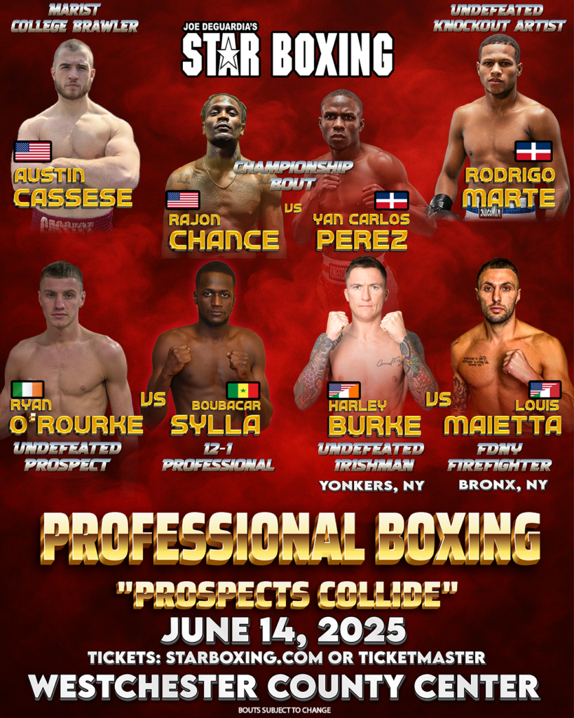 “This event is a throwback to when young rising stars faced off in local wars, thrilling packed arenas with high-stakes matchups,” said Joe DeGuardia, CEO of Star Boxing. “We’re bringing that energy back on June 14, featuring true 50/50 contests where fighters are willing to take risks rather than wait years for big fights. This is what boxing is about—overcoming adversity and shaping future champions.”