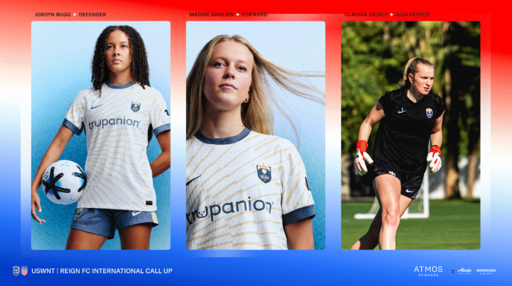 RENTON, WASH. – Three Seattle Reign FC players have been named to the U.S. Women’s National Team roster for the 2026 SheBelieves Cup. Defender Jordyn Bugg, forward Maddie Dahlien and goalkeeper Claudia Dickey most recently represented the USWNT for a pair of friendlies during January camp, where Dahlien earned her first senior cap, and all three are now set to compete in the tournament for the first time.