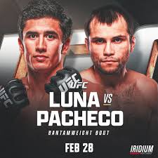 The Luna vs. Pacheco bantamweight bout sits on the main card (roughly 8th fight of 13 on the card). Expected walkouts around 9:00–10:00 PM ET depending on prior bout lengths. The full event runs approximately 4–5 hours.