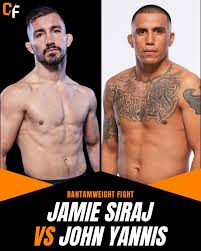 The event features 13 bouts and marks the UFC’s return to Winnipeg. The main event is a welterweight clash between former title challenger Gilbert Burns (22-9) and Canadian contender Mike Malott (13-2-1). The full card includes several ranked or notable fighters across divisions, with the bantamweight bout between Jamie Siraj and John Yannis slotted as the opening fight on the preliminary card (fight 1 of 13).