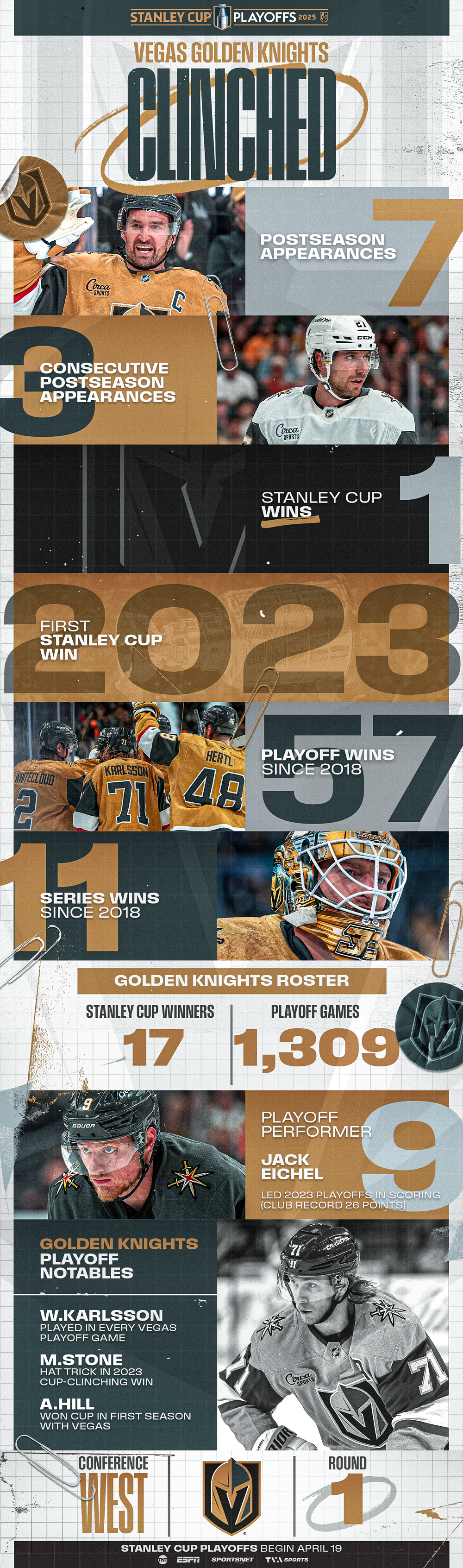 HockeyNHL Vegas Golden Knights Clinch Playoff Spot for Seventh Time in Eight Seasons By NHL Editor - April 1, 2025 0 61 FacebookTwitterPinterestWhatsAppLinkedinReddItEmailPrint